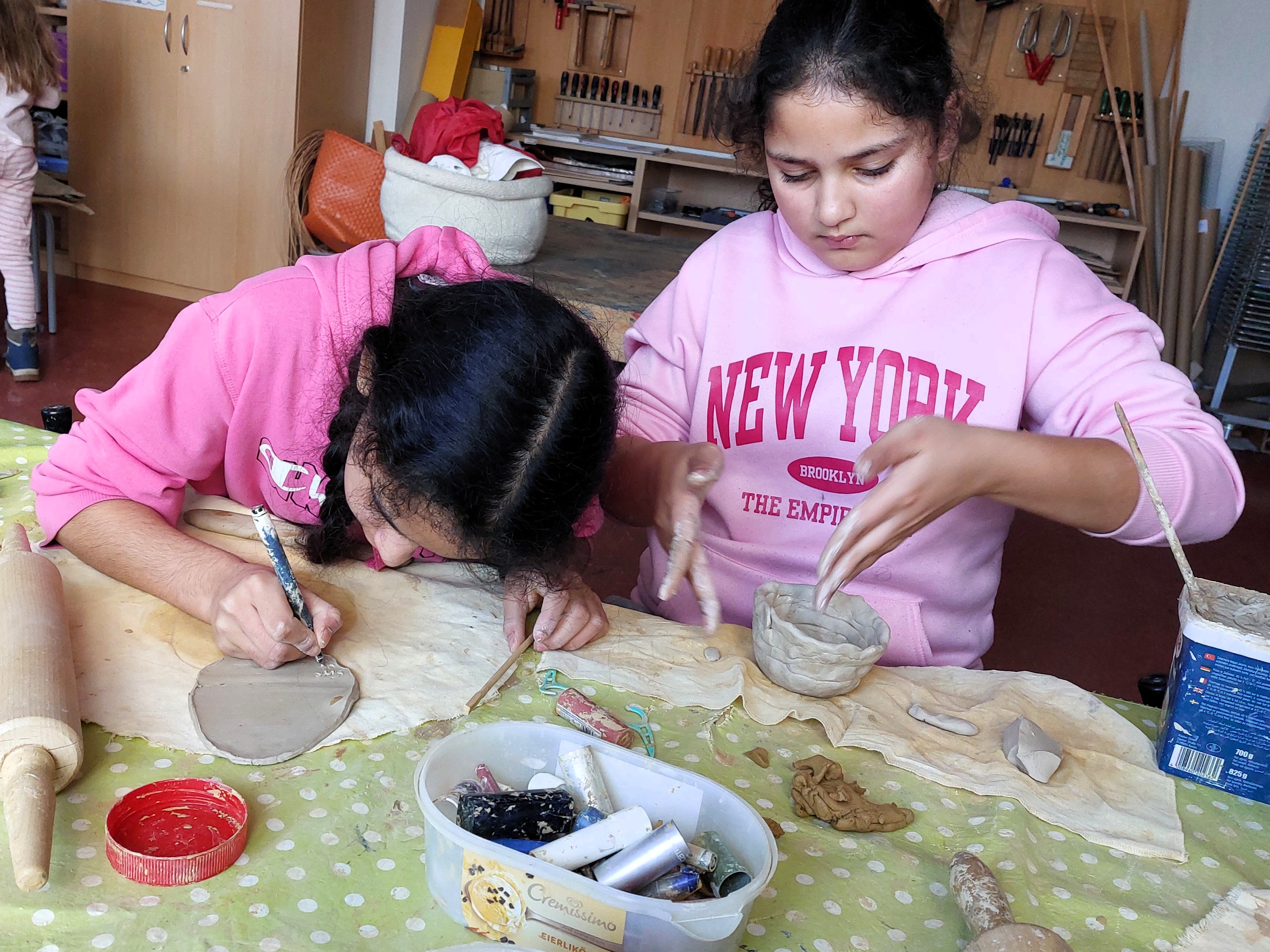 Hier lernen wir gerade wie Sticken funktioniert.