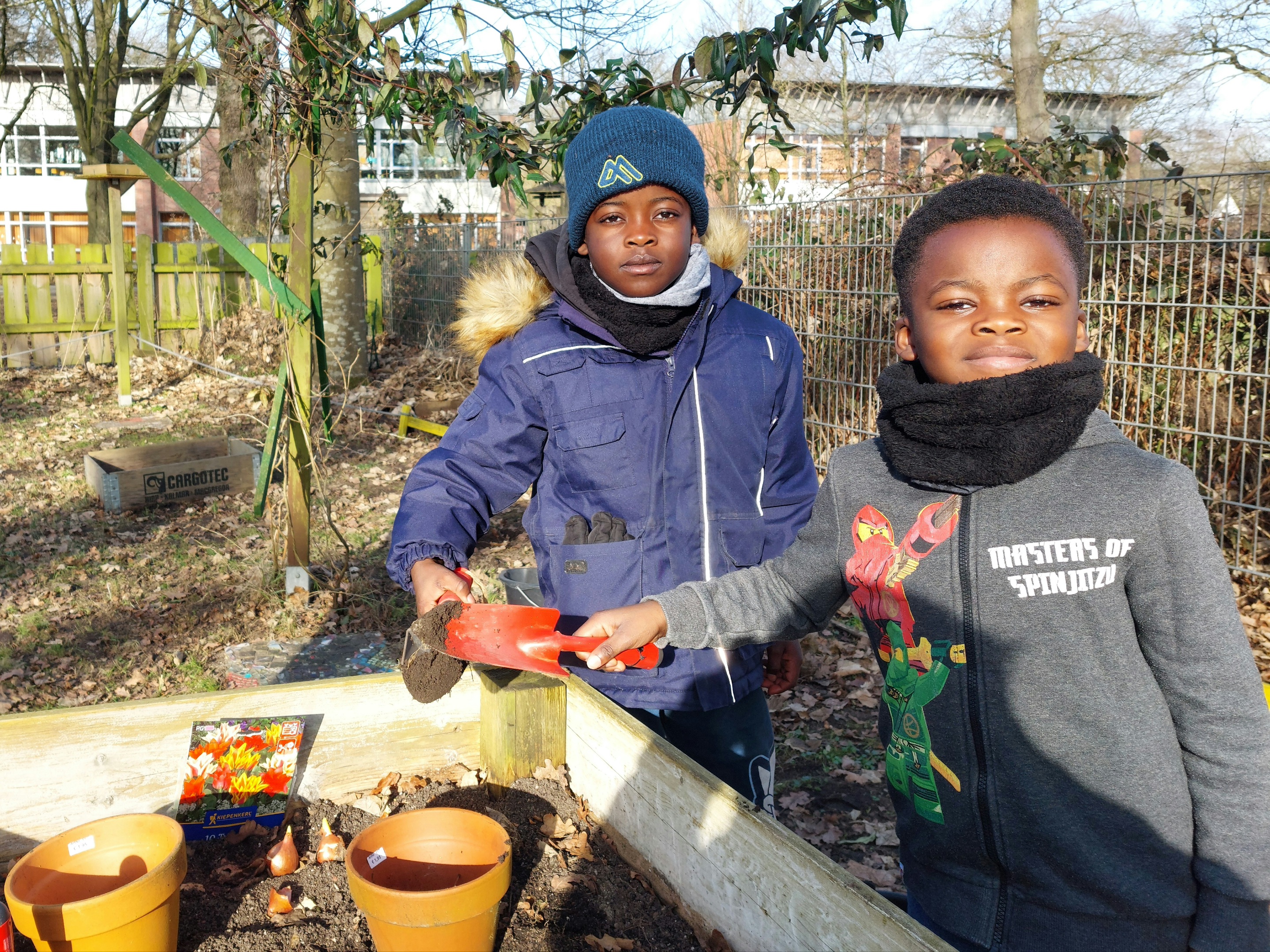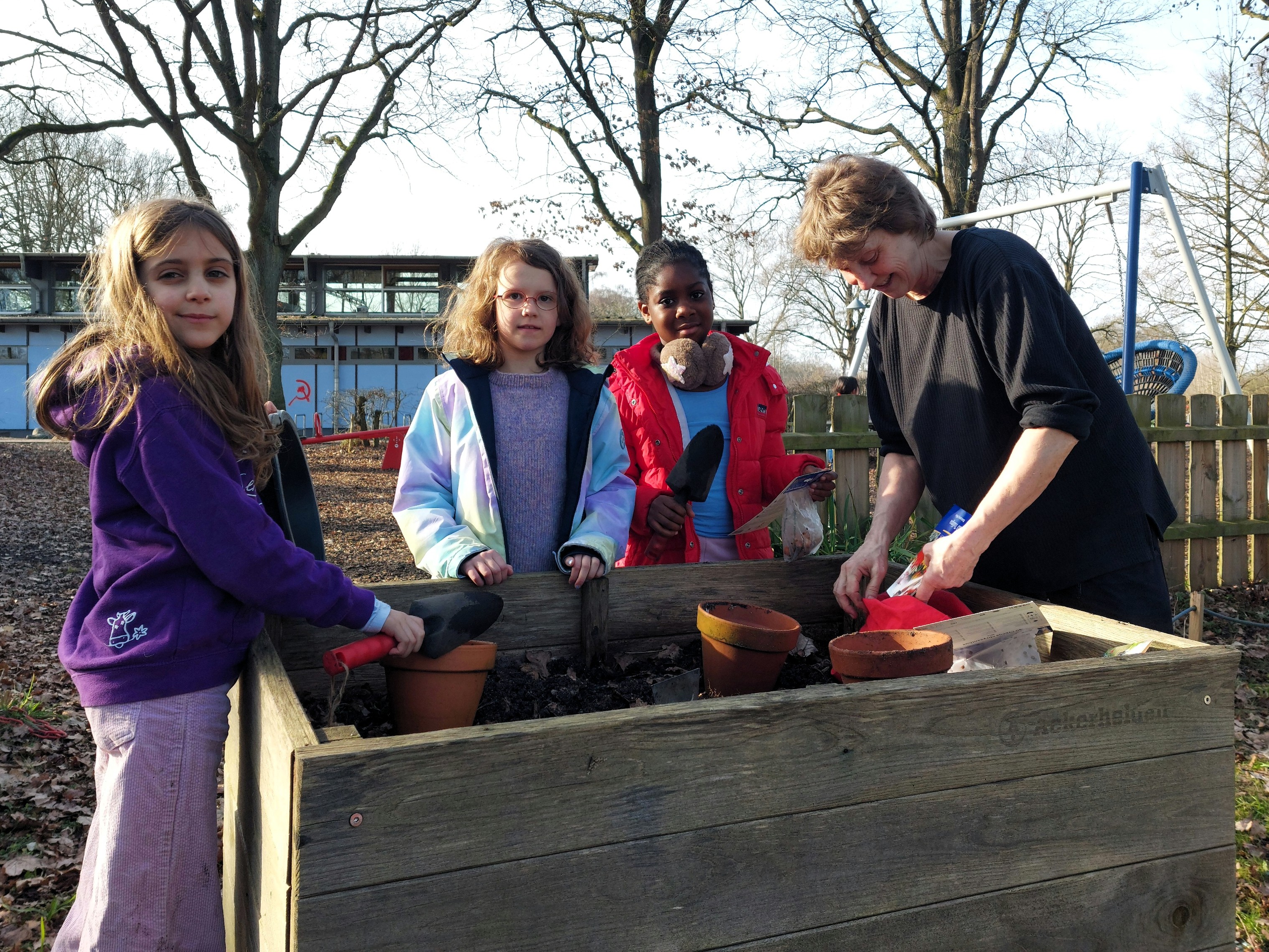 ... und stecken Blumenzwiebeln hinein.