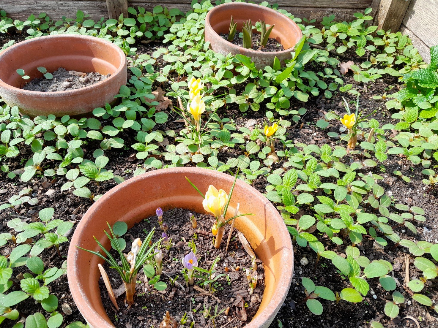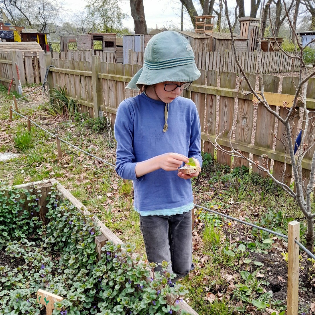 Im Schulgarten sprießen reichlich Wildkräuter, wie Gundermann, Giersch, Brennessel und Zitronenmelisse.