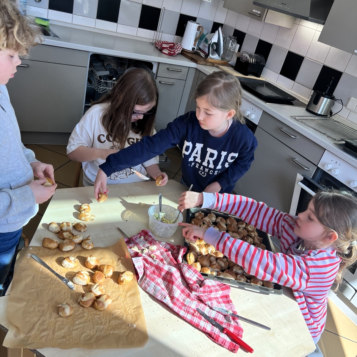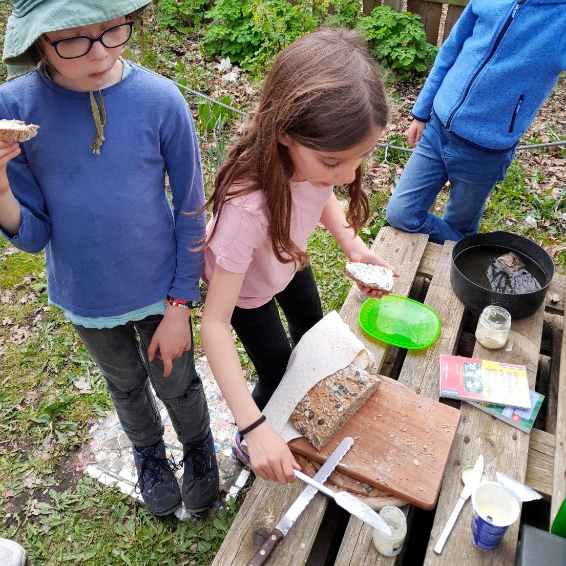 Dann haben wir Butter selbst hergestellt, Kräuter untergemischt und gutes Brot damit bestrichen.